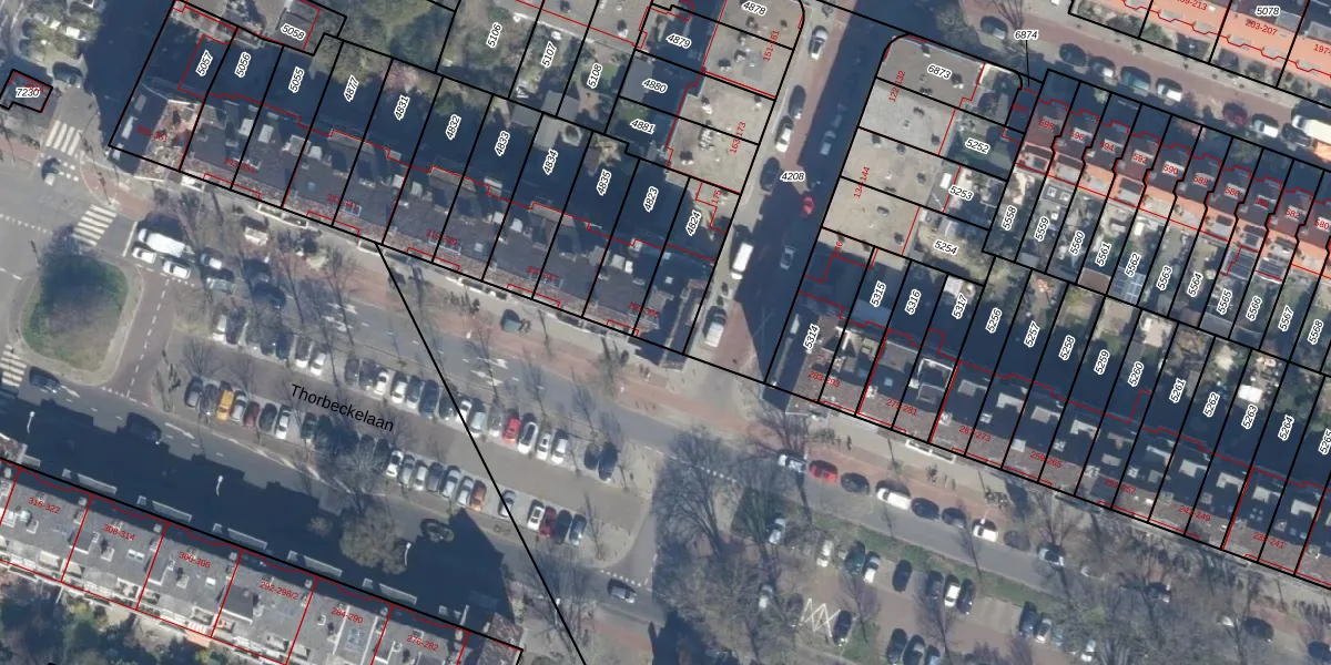Thorbeckelaan 299 is gelegen op kadastraal perceel LDN03I4824. Deze kadastrale aanduiding is uniek en wordt gebruikt door het Kadaster om eigendomsrechten en andere zakelijke rechten vast te leggen. Het perceel maakt onderdeel uit van de kadastrale gemeente Loosduinen.