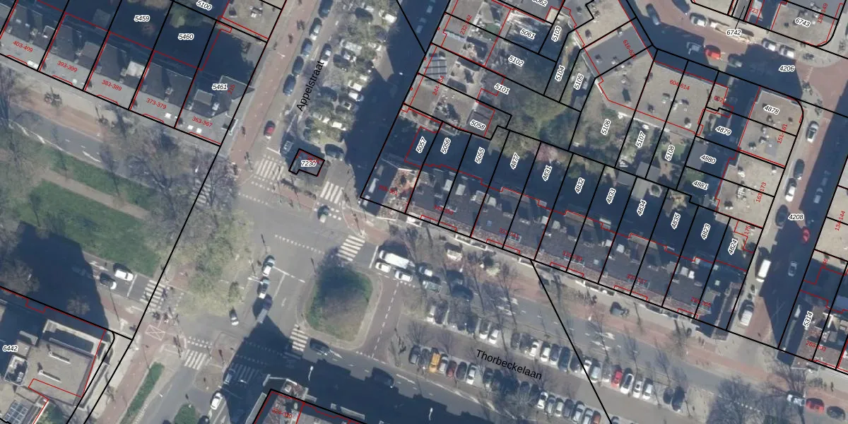 Het perceel waarop Thorbeckelaan 349 staat heeft een oppervlakte van 187 m². Dit is een middelgroot perceel. De perceeloppervlakte wordt geregistreerd door het Kadaster. Gedetailleerde informatie over de maten van dit perceel kunt u vinden in het rapport Kadastrale kaart met maatvoering van Thorbeckelaan 349.