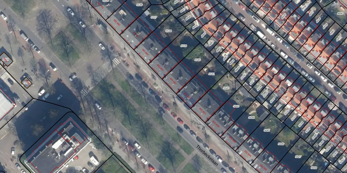 Thorbeckelaan 643 is gelegen op kadastraal perceel LDN03I5540. Deze kadastrale aanduiding is uniek en wordt gebruikt door het Kadaster om eigendomsrechten en andere zakelijke rechten vast te leggen. Het perceel maakt onderdeel uit van de kadastrale gemeente Loosduinen.