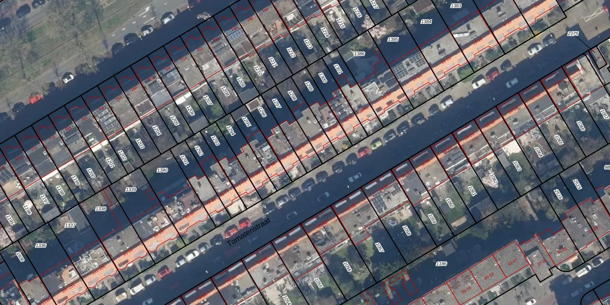 Het perceel waarop Tomatenstraat 57 staat heeft een oppervlakte van 175 m². Dit is een middelgroot perceel. De perceeloppervlakte wordt geregistreerd door het Kadaster. Gedetailleerde informatie over de maten van dit perceel kunt u vinden in het rapport Kadastrale kaart met maatvoering van Tomatenstraat 57.