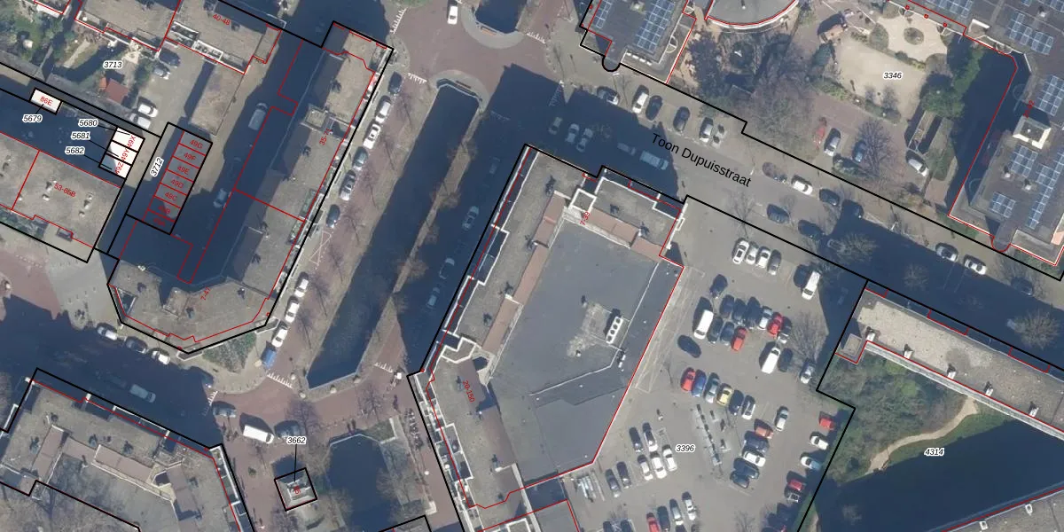 Het perceel waarop Toon Dupuisstraat 21 staat heeft een oppervlakte van 6388 m². Dit is een zeer groot perceel. De perceeloppervlakte wordt geregistreerd door het Kadaster. Gedetailleerde informatie over de maten van dit perceel kunt u vinden in het rapport Kadastrale kaart met maatvoering van Toon Dupuisstraat 21.