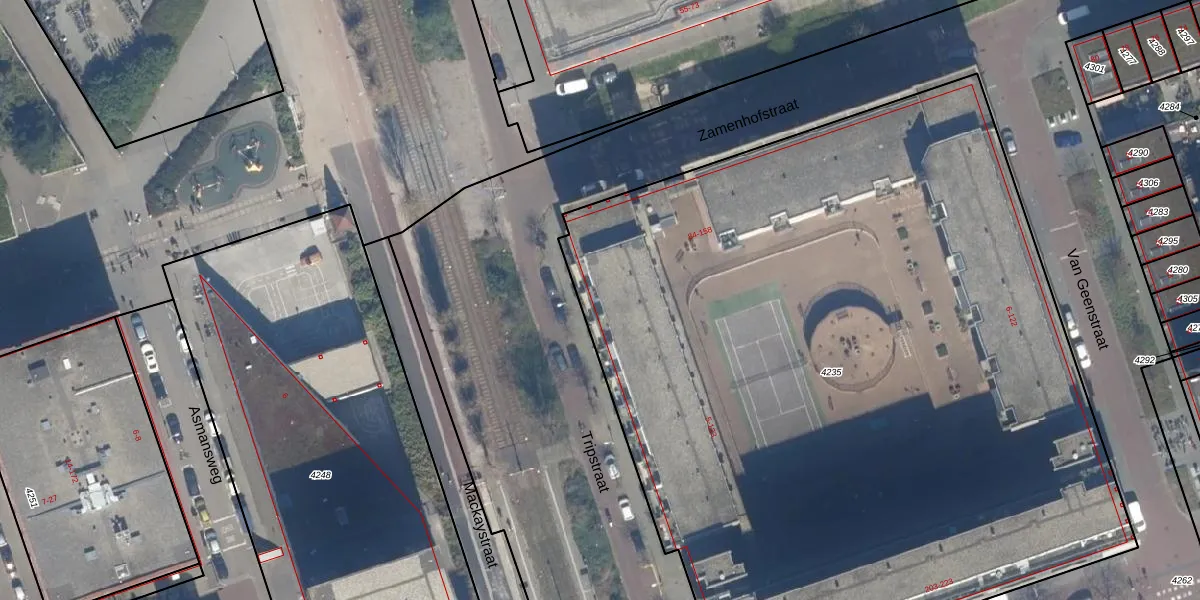 Het perceel waarop Tripstraat 119 staat heeft een oppervlakte van 6196 m². Dit is een zeer groot perceel. De perceeloppervlakte wordt geregistreerd door het Kadaster. Gedetailleerde informatie over de maten van dit perceel kunt u vinden in het rapport Kadastrale kaart met maatvoering van Tripstraat 119.