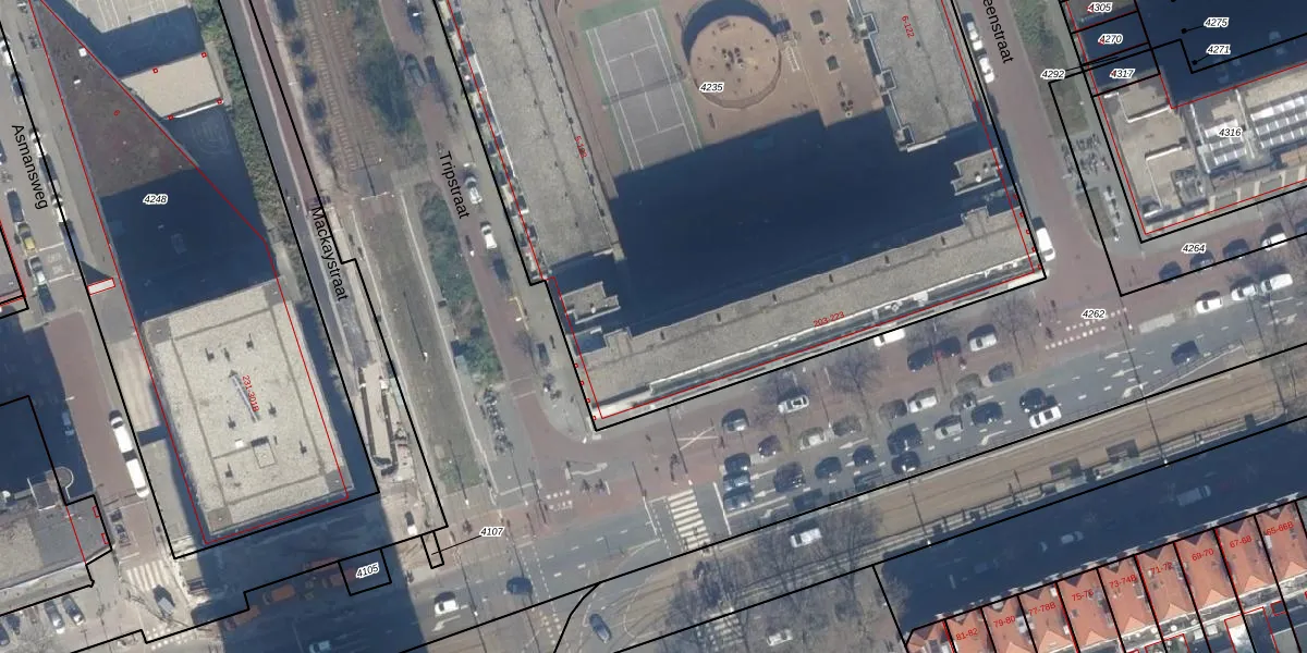 Het perceel waarop Tripstraat 7 staat heeft een oppervlakte van 6196 m². Dit is een zeer groot perceel. De perceeloppervlakte wordt geregistreerd door het Kadaster. Gedetailleerde informatie over de maten van dit perceel kunt u vinden in het rapport Kadastrale kaart met maatvoering van Tripstraat 7.