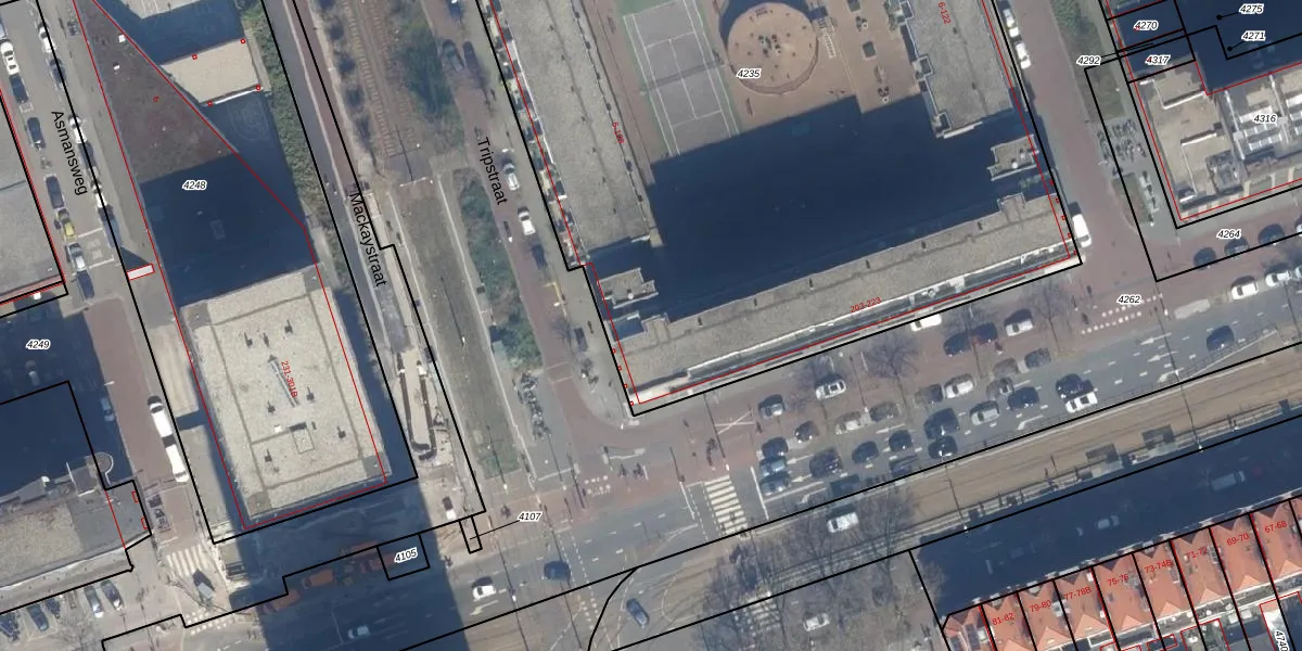 Het perceel waarop Tripstraat 81 staat heeft een oppervlakte van 6196 m². Dit is een zeer groot perceel. De perceeloppervlakte wordt geregistreerd door het Kadaster. Gedetailleerde informatie over de maten van dit perceel kunt u vinden in het rapport Kadastrale kaart met maatvoering van Tripstraat 81.