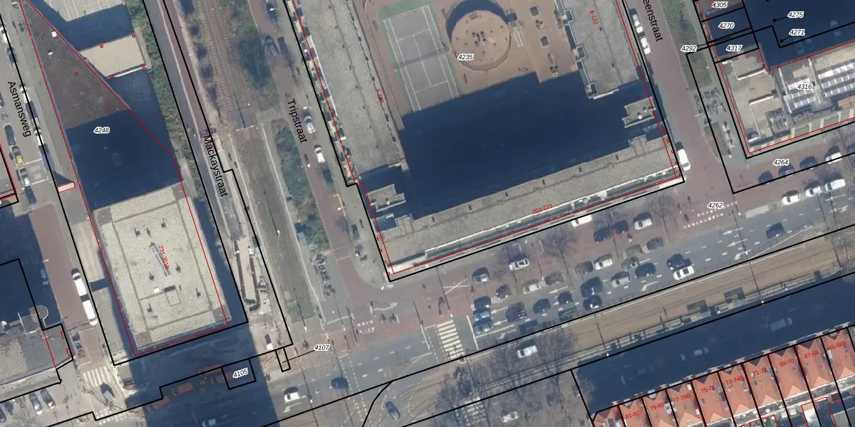 Het perceel waarop Tripstraat 83 staat heeft een oppervlakte van 6196 m². Dit is een zeer groot perceel. De perceeloppervlakte wordt geregistreerd door het Kadaster. Gedetailleerde informatie over de maten van dit perceel kunt u vinden in het rapport Kadastrale kaart met maatvoering van Tripstraat 83.