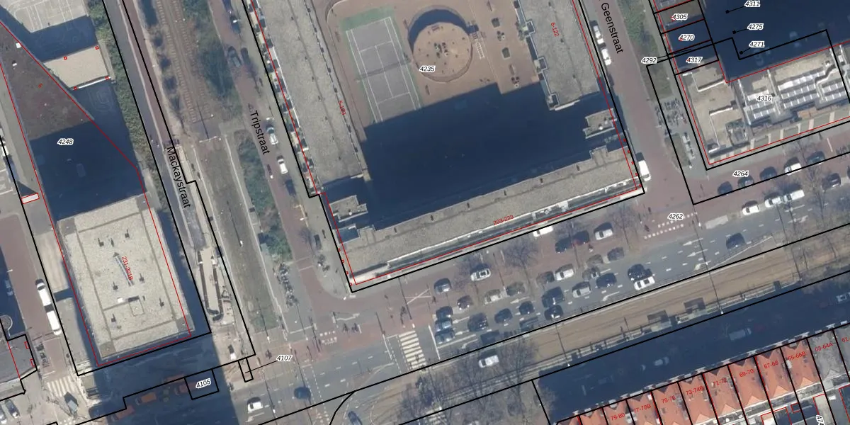Het perceel waarop Tripstraat 85 staat heeft een oppervlakte van 6196 m². Dit is een zeer groot perceel. De perceeloppervlakte wordt geregistreerd door het Kadaster. Gedetailleerde informatie over de maten van dit perceel kunt u vinden in het rapport Kadastrale kaart met maatvoering van Tripstraat 85.