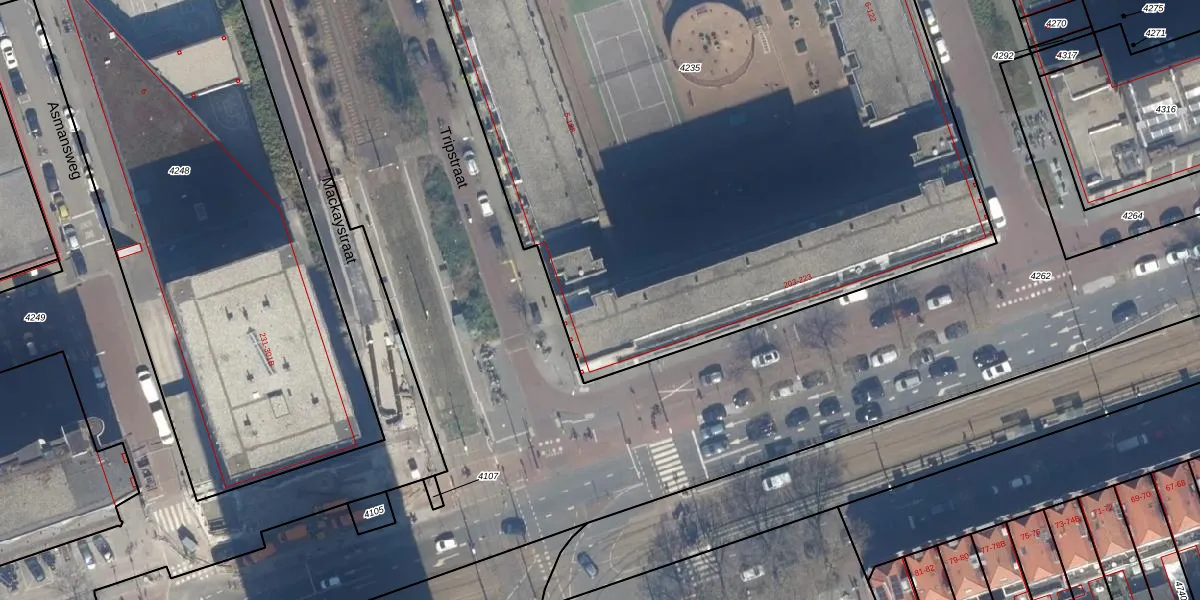 Het perceel waarop Tripstraat 91 staat heeft een oppervlakte van 6196 m². Dit is een zeer groot perceel. De perceeloppervlakte wordt geregistreerd door het Kadaster. Gedetailleerde informatie over de maten van dit perceel kunt u vinden in het rapport Kadastrale kaart met maatvoering van Tripstraat 91.