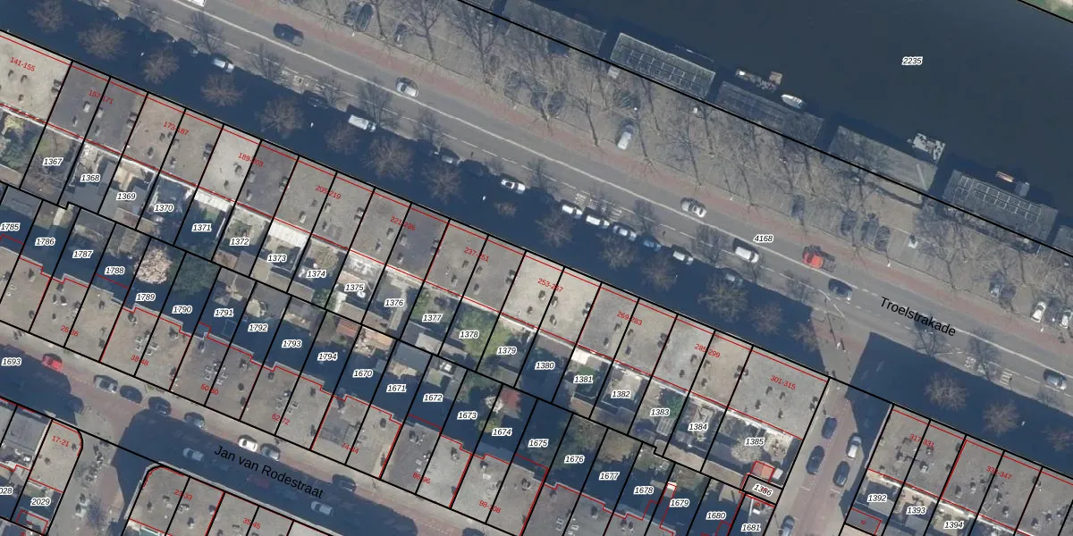 Het perceel waarop Troelstrakade 261 staat heeft een oppervlakte van 191 m². Dit is een middelgroot perceel. De perceeloppervlakte wordt geregistreerd door het Kadaster. Gedetailleerde informatie over de maten van dit perceel kunt u vinden in het rapport Kadastrale kaart met maatvoering van Troelstrakade 261.