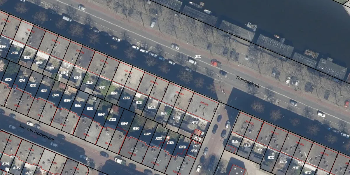 Het perceel waarop Troelstrakade 297 staat heeft een oppervlakte van 193 m². Dit is een middelgroot perceel. De perceeloppervlakte wordt geregistreerd door het Kadaster. Gedetailleerde informatie over de maten van dit perceel kunt u vinden in het rapport Kadastrale kaart met maatvoering van Troelstrakade 297.