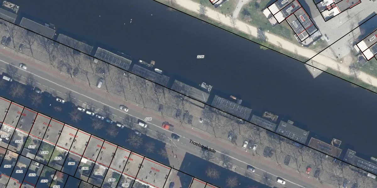 Het perceel waarop Troelstrakade 38 staat heeft een oppervlakte van 3,1 ha. Dit is een zeer groot perceel. De perceeloppervlakte wordt geregistreerd door het Kadaster. Gedetailleerde informatie over de maten van dit perceel kunt u vinden in het rapport Kadastrale kaart met maatvoering van Troelstrakade 38.