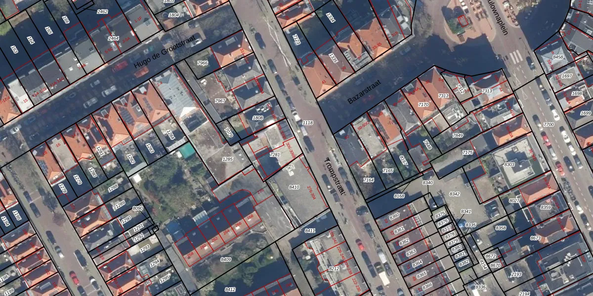 Trompstraat 306 is gelegen op kadastraal perceel GVH10O7281. Deze kadastrale aanduiding is uniek en wordt gebruikt door het Kadaster om eigendomsrechten en andere zakelijke rechten vast te leggen. Het perceel maakt onderdeel uit van de kadastrale gemeente 's-Gravenhage.