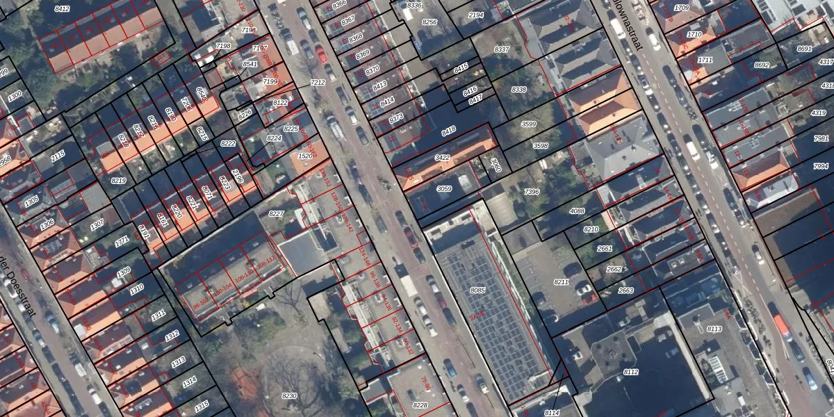 Het perceel waarop het adres ligt is GVH10-O-3059. De afkorting 'GVH10' staat voor kadastrale gemeente 's-Gravenhage. Het perceel is kleiner dan gemiddeld in 's-Gravenhage. Het perceel is 158 m² groot, terwijl het gemiddelde ligt op 287,71 m². Het grootste perceel in de kadastrale gemeente is 1,3 ha. Het kleinste perceel heeft een oppervlakte van 1 m². Op het perceel zijn 2 adressen aanwezig. In de Basisregistratie Kadaster (BRK) werden de grenzen van het perceel geregistreerd op 22-12-2003.
