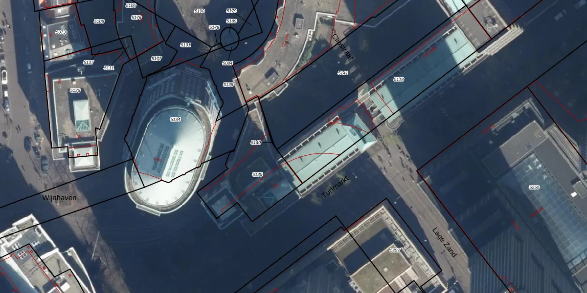 Het perceel waarop Turfmarkt 154 staat heeft een oppervlakte van 1113 m². Dit is een zeer groot perceel. De perceeloppervlakte wordt geregistreerd door het Kadaster. Gedetailleerde informatie over de maten van dit perceel kunt u vinden in het rapport Kadastrale kaart met maatvoering van Turfmarkt 154.