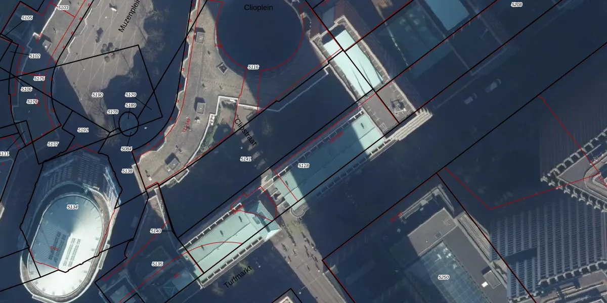 Het perceel waarop Turfmarkt 178 staat heeft een oppervlakte van 1113 m². Dit is een zeer groot perceel. De perceeloppervlakte wordt geregistreerd door het Kadaster. Gedetailleerde informatie over de maten van dit perceel kunt u vinden in het rapport Kadastrale kaart met maatvoering van Turfmarkt 178.