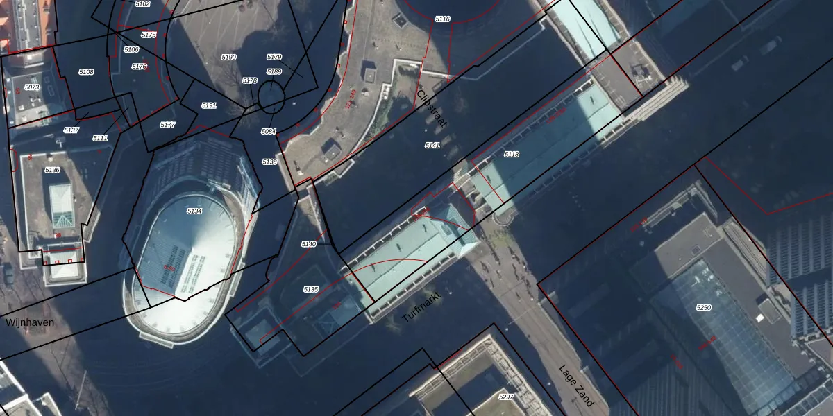 Het perceel waarop Turfmarkt 190 staat heeft een oppervlakte van 1113 m². Dit is een zeer groot perceel. De perceeloppervlakte wordt geregistreerd door het Kadaster. Gedetailleerde informatie over de maten van dit perceel kunt u vinden in het rapport Kadastrale kaart met maatvoering van Turfmarkt 190.
