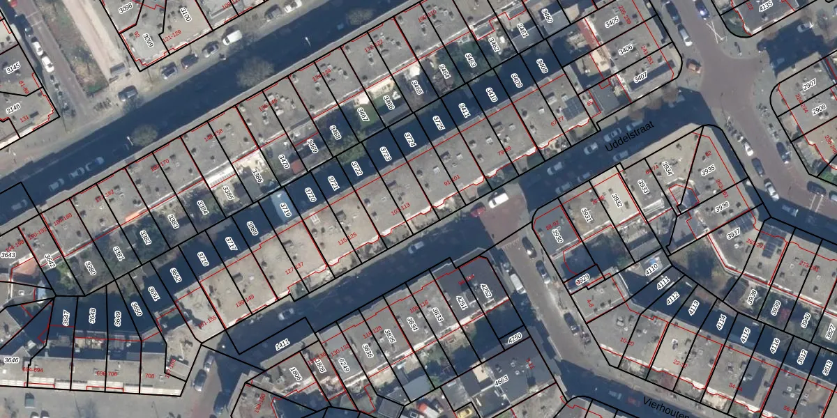 Uddelstraat 107 is gelegen op kadastraal perceel GVH28AL3723. Deze kadastrale aanduiding is uniek en wordt gebruikt door het Kadaster om eigendomsrechten en andere zakelijke rechten vast te leggen. Het perceel maakt onderdeel uit van de kadastrale gemeente 's-Gravenhage.