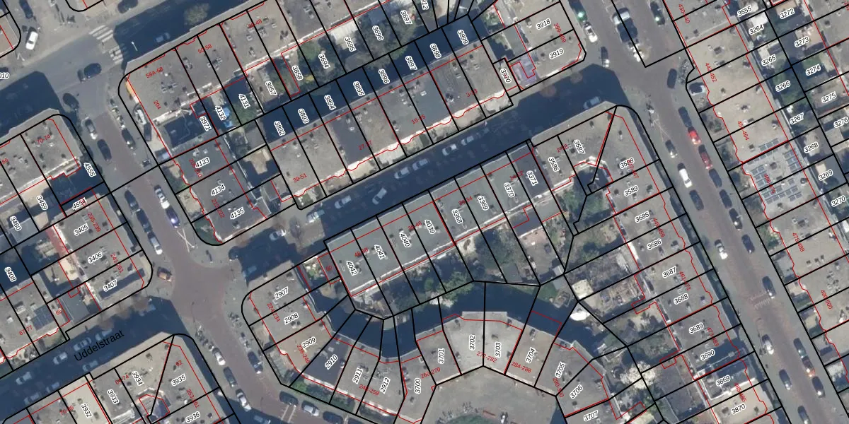 Uddelstraat 36 is gelegen op kadastraal perceel GVH28AL4039. Deze kadastrale aanduiding is uniek en wordt gebruikt door het Kadaster om eigendomsrechten en andere zakelijke rechten vast te leggen. Het perceel maakt onderdeel uit van de kadastrale gemeente 's-Gravenhage.