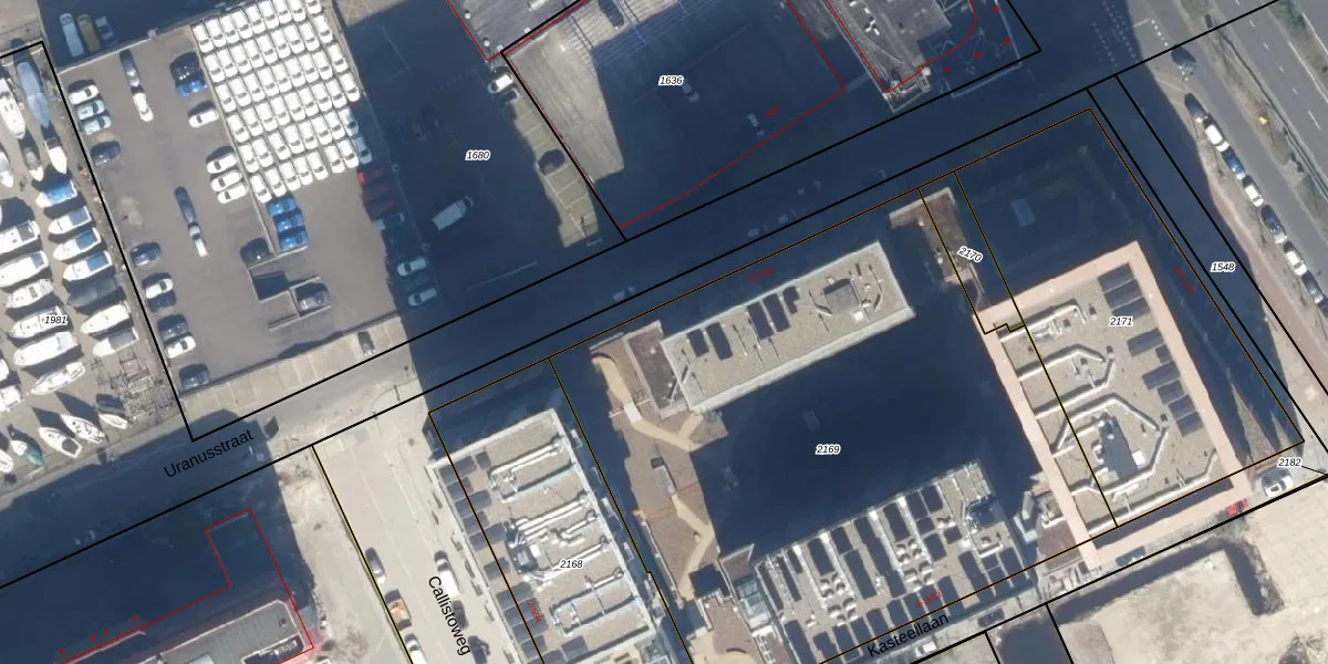 Het perceel waarop Uranusstraat 186 staat heeft een oppervlakte van 3794 m². Dit is een zeer groot perceel. De perceeloppervlakte wordt geregistreerd door het Kadaster. Gedetailleerde informatie over de maten van dit perceel kunt u vinden in het rapport Kadastrale kaart met maatvoering van Uranusstraat 186.