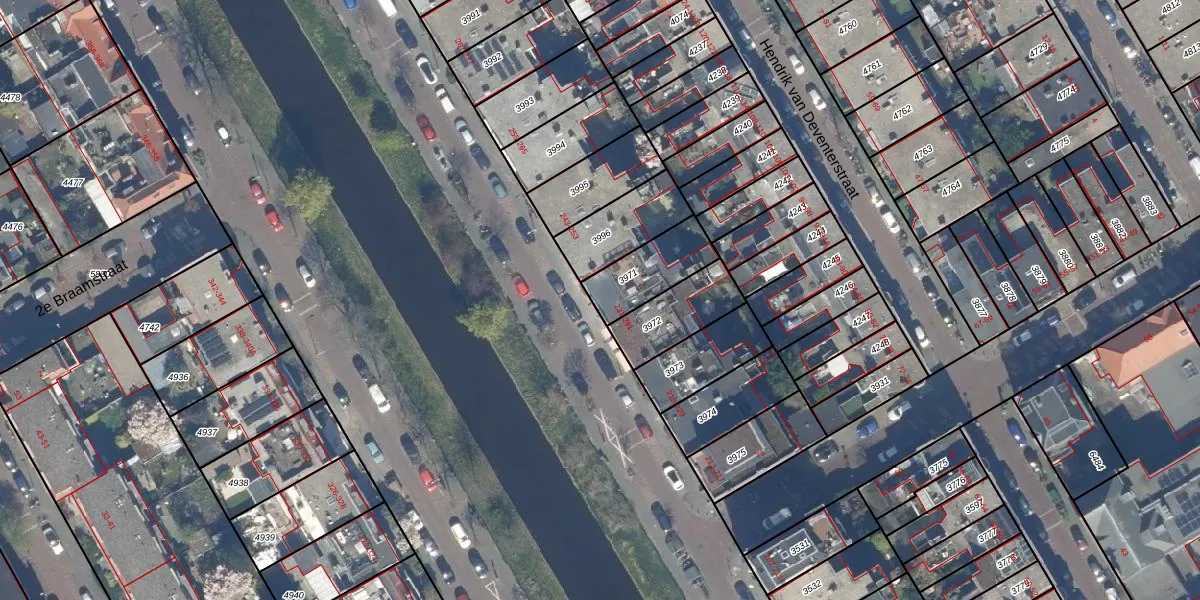 Het adres ligt op het perceel GVH29-AM-3971, dat zich in de kadastrale gemeente 's-Gravenhage bevindt. Het perceel is kleiner dan gemiddeld in 's-Gravenhage. Het perceel is 192 m² groot, terwijl het gemiddelde ligt op 303,34 m². De grootste perceeloppervlakte in de kadastrale gemeente is 3,0 ha. De kleinste oppervlakte bedraagt 0 m². Er zijn 3 adressen aanwezig op het perceel. In de Basisregistratie Kadaster (BRK) werden de grenzen van het perceel geregistreerd op 03-12-2002.