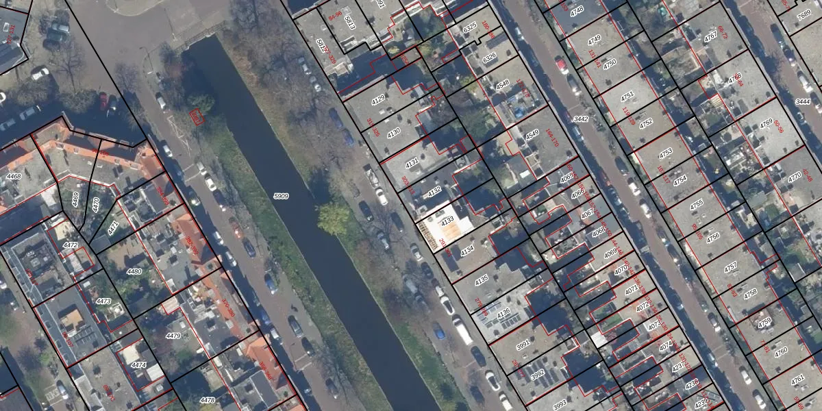 Het adres is gelegen op perceel 4132 in de sectie AM en de kadastrale gemeente 's-Gravenhage. De kadastrale aanduiding is aldus GVH29-AM-4132. Het perceel is kleiner dan gemiddeld in 's-Gravenhage. Het perceel is 192 m² groot, terwijl het gemiddelde ligt op 303,34 m². Het grootste perceel in de kadastrale gemeente is 3,0 ha. Het kleinste perceel heeft een oppervlakte van 0 m². Op het perceel zijn 3 adressen aanwezig. De huidige grenzen van het perceel zijn digitaal in de Basisregistratie Kadaster (BRK) geregistreerd op 03-12-2002.