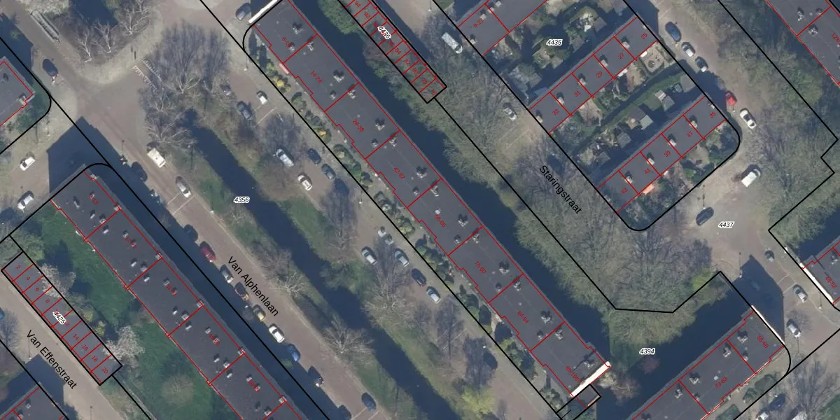 Het perceel waarop Van Alphenlaan 60 staat heeft een oppervlakte van 4562 m². Dit is een zeer groot perceel. De perceeloppervlakte wordt geregistreerd door het Kadaster. Gedetailleerde informatie over de maten van dit perceel kunt u vinden in het rapport Kadastrale kaart met maatvoering van Van Alphenlaan 60.