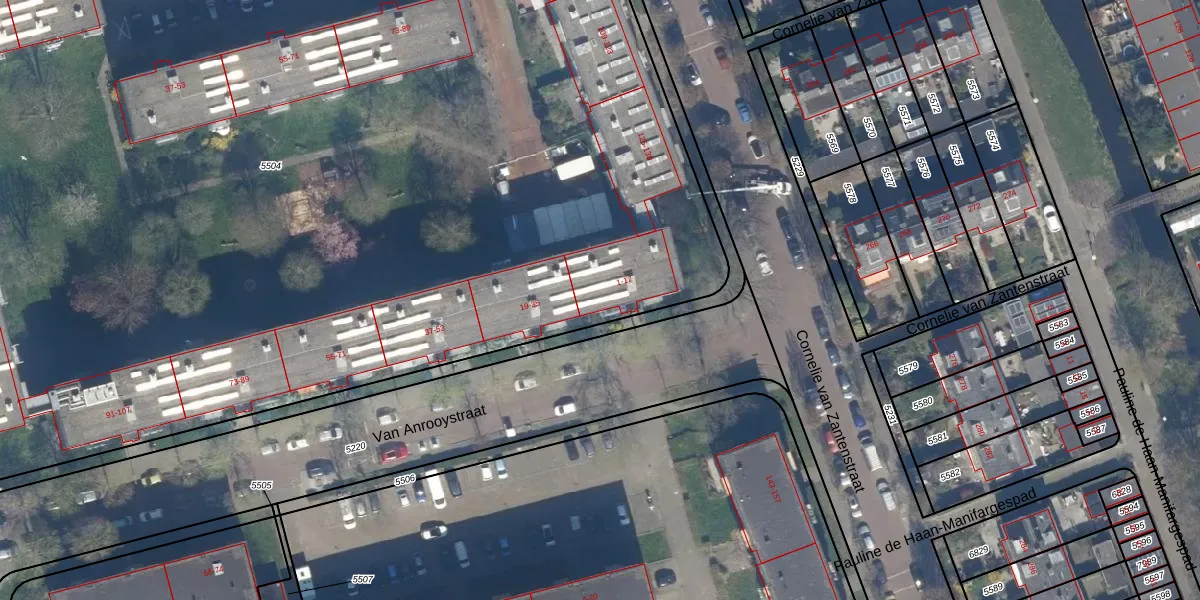 Van Anrooystraat 13 is gelegen op kadastraal perceel LDN03H5504. Deze kadastrale aanduiding is uniek en wordt gebruikt door het Kadaster om eigendomsrechten en andere zakelijke rechten vast te leggen. Het perceel maakt onderdeel uit van de kadastrale gemeente Loosduinen.