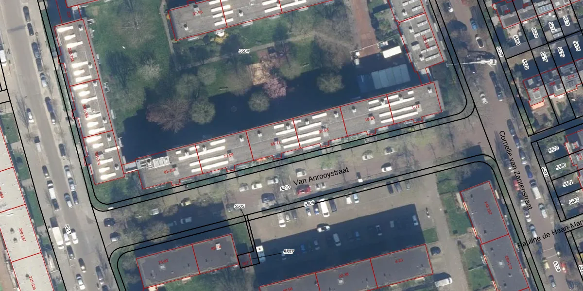 Van Anrooystraat 59 is gelegen op kadastraal perceel LDN03H5504. Deze kadastrale aanduiding is uniek en wordt gebruikt door het Kadaster om eigendomsrechten en andere zakelijke rechten vast te leggen. Het perceel maakt onderdeel uit van de kadastrale gemeente Loosduinen.