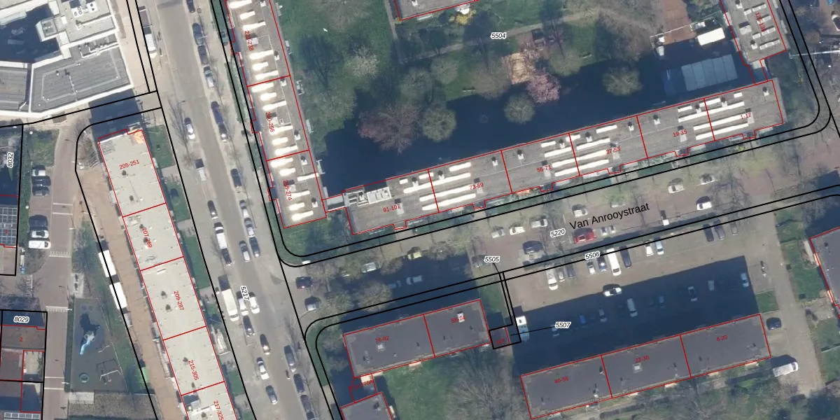 Van Anrooystraat 97 is gelegen op kadastraal perceel LDN03H5504. Deze kadastrale aanduiding is uniek en wordt gebruikt door het Kadaster om eigendomsrechten en andere zakelijke rechten vast te leggen. Het perceel maakt onderdeel uit van de kadastrale gemeente Loosduinen.