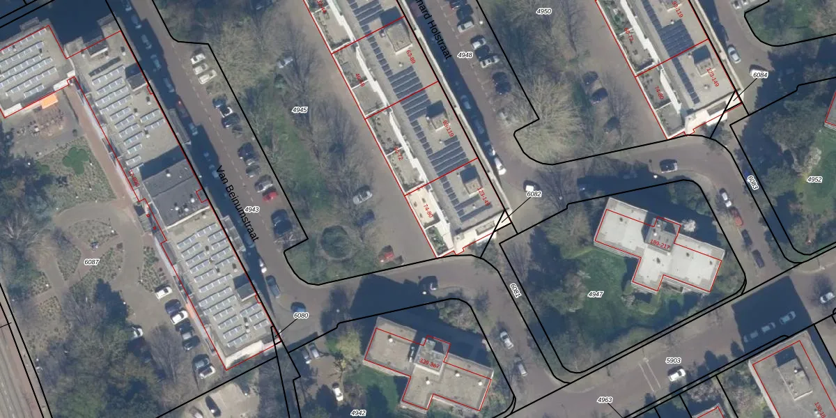 Het perceel waarop Van Beinumstraat 76 staat heeft een oppervlakte van 4537 m². Dit is een zeer groot perceel. De perceeloppervlakte wordt geregistreerd door het Kadaster. Gedetailleerde informatie over de maten van dit perceel kunt u vinden in het rapport Kadastrale kaart met maatvoering van Van Beinumstraat 76.