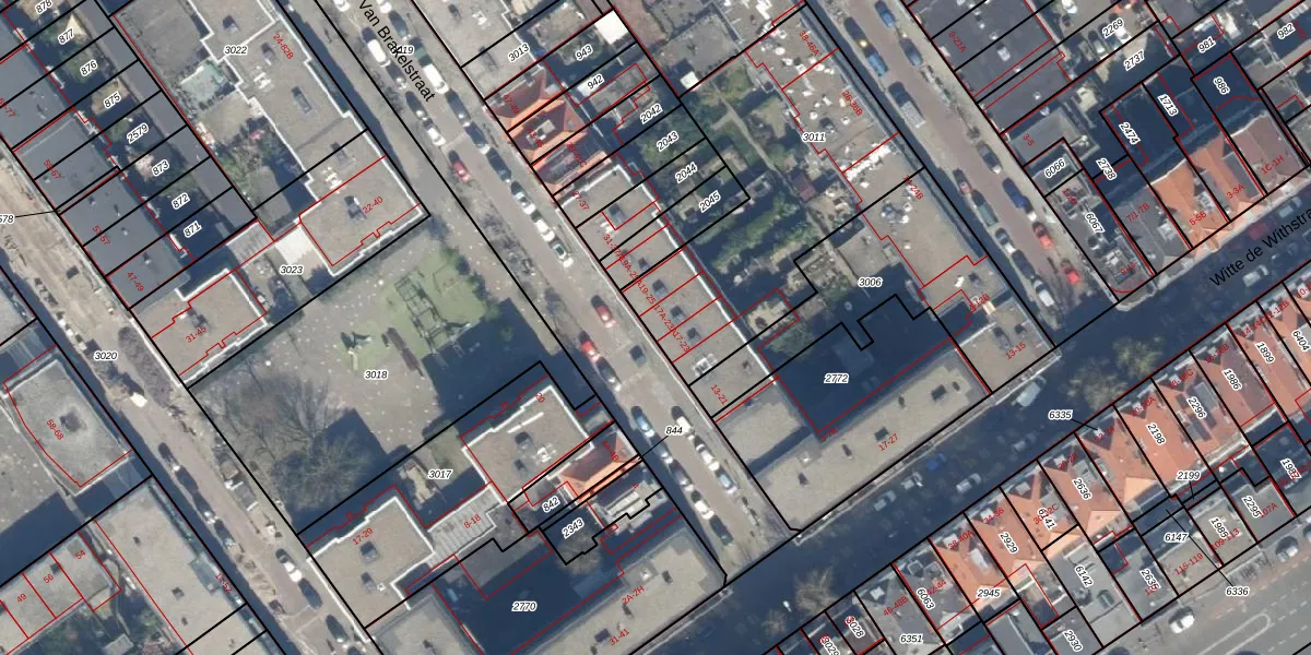 Het perceel waarop Van Brakelstraat 17-A staat heeft een oppervlakte van 1181 m². Dit is een zeer groot perceel. De perceeloppervlakte wordt geregistreerd door het Kadaster. Gedetailleerde informatie over de maten van dit perceel kunt u vinden in het rapport Kadastrale kaart met maatvoering van Van Brakelstraat 17-A.