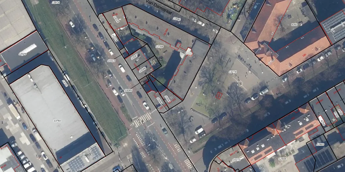 Het perceel waarop Van Damstraat 22 staat heeft een oppervlakte van 1269 m². Dit is een zeer groot perceel. De perceeloppervlakte wordt geregistreerd door het Kadaster. Gedetailleerde informatie over de maten van dit perceel kunt u vinden in het rapport Kadastrale kaart met maatvoering van Van Damstraat 22.