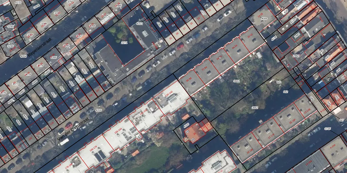 Van der Duynstraat 132 is gelegen op kadastraal perceel GVH21AD4321. Deze kadastrale aanduiding is uniek en wordt gebruikt door het Kadaster om eigendomsrechten en andere zakelijke rechten vast te leggen. Het perceel maakt onderdeel uit van de kadastrale gemeente 's-Gravenhage.