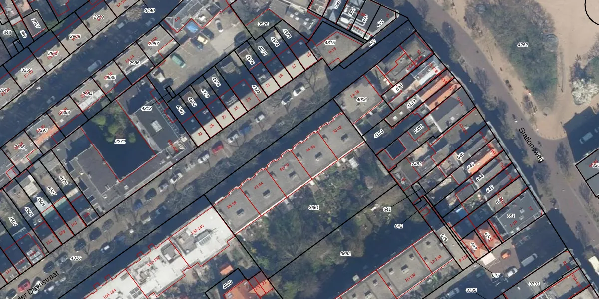 Van der Duynstraat 54 is gelegen op kadastraal perceel GVH21AD3661. Deze kadastrale aanduiding is uniek en wordt gebruikt door het Kadaster om eigendomsrechten en andere zakelijke rechten vast te leggen. Het perceel maakt onderdeel uit van de kadastrale gemeente 's-Gravenhage.