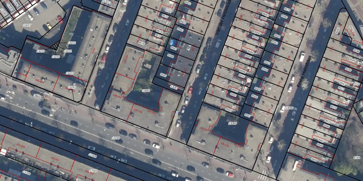 Het perceel waarop het adres ligt is GVH08-L-13087. De afkorting 'GVH08' staat voor kadastrale gemeente 's-Gravenhage. De gemiddelde perceelgrootte in 's-Gravenhage is 468,2 m². Dit perceel is kleiner: de perceeloppervlakte bedraagt 75 m². De grootste perceeloppervlakte in de kadastrale gemeente is 3,8 ha. De kleinste oppervlakte bedraagt 0 m². Er zijn geen andere adressen aanwezig op het perceel. De huidige grenzen van het perceel zijn digitaal in de Basisregistratie Kadaster (BRK) geregistreerd op 19-09-2003.