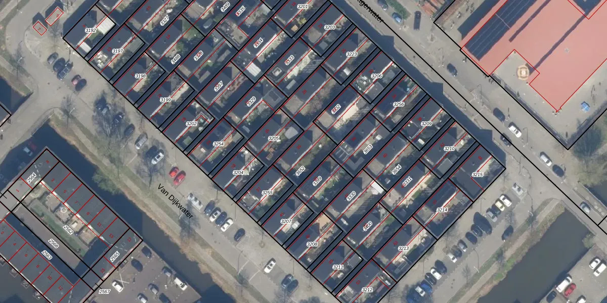 Het perceel waarop Van Dijkwater 39 staat heeft een oppervlakte van 491 m². Dit is een groot perceel. De perceeloppervlakte wordt geregistreerd door het Kadaster. Gedetailleerde informatie over de maten van dit perceel kunt u vinden in het rapport Kadastrale kaart met maatvoering van Van Dijkwater 39.