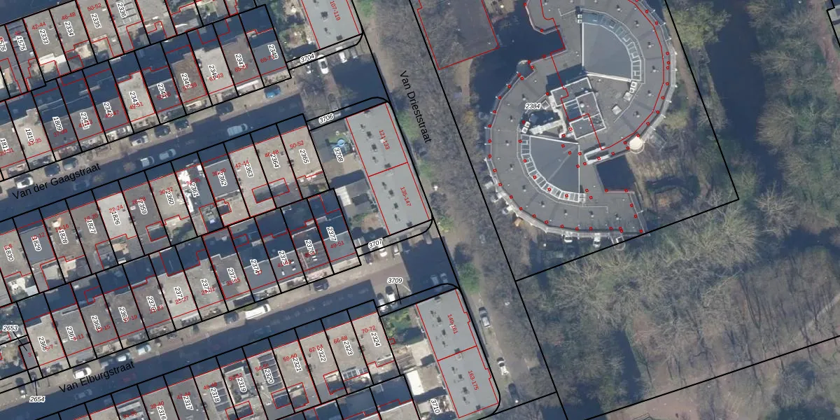 Het perceel waarop Van Drieststraat 145 staat heeft een oppervlakte van 606 m². Dit is een groot perceel. De perceeloppervlakte wordt geregistreerd door het Kadaster. Gedetailleerde informatie over de maten van dit perceel kunt u vinden in het rapport Kadastrale kaart met maatvoering van Van Drieststraat 145.