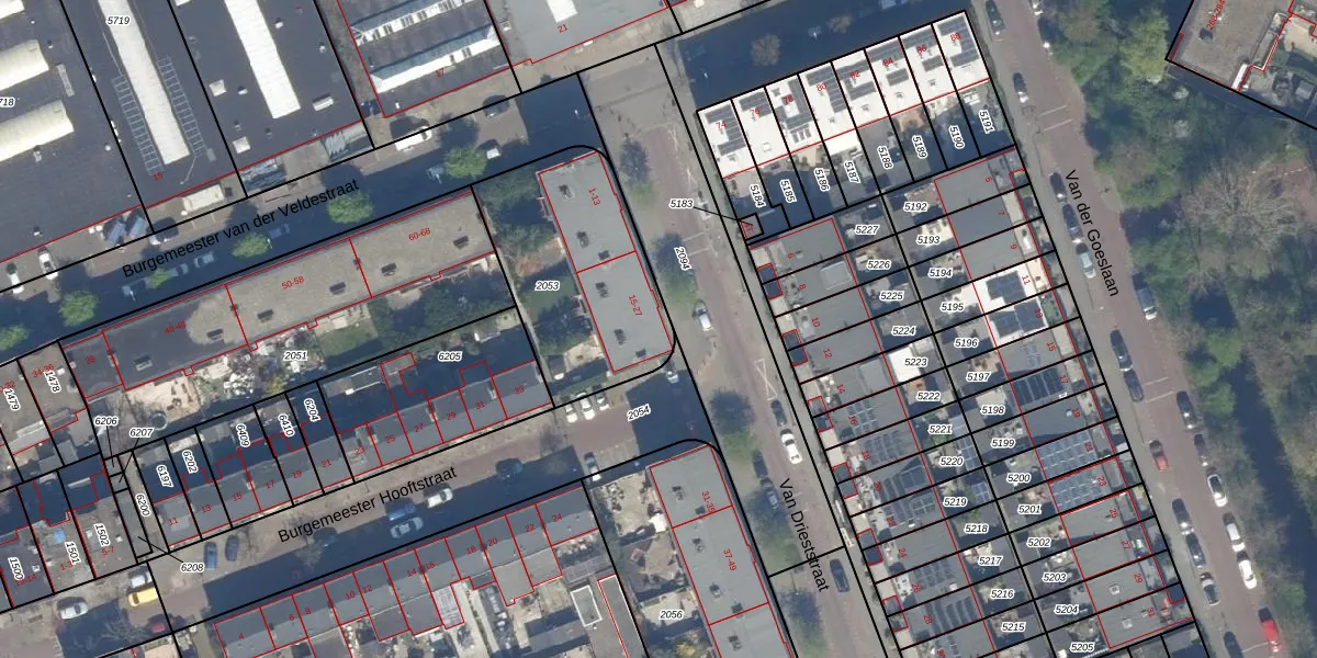 Van Drieststraat 25 is gelegen op kadastraal perceel LDN03M2053. Deze kadastrale aanduiding is uniek en wordt gebruikt door het Kadaster om eigendomsrechten en andere zakelijke rechten vast te leggen. Het perceel maakt onderdeel uit van de kadastrale gemeente Loosduinen.
