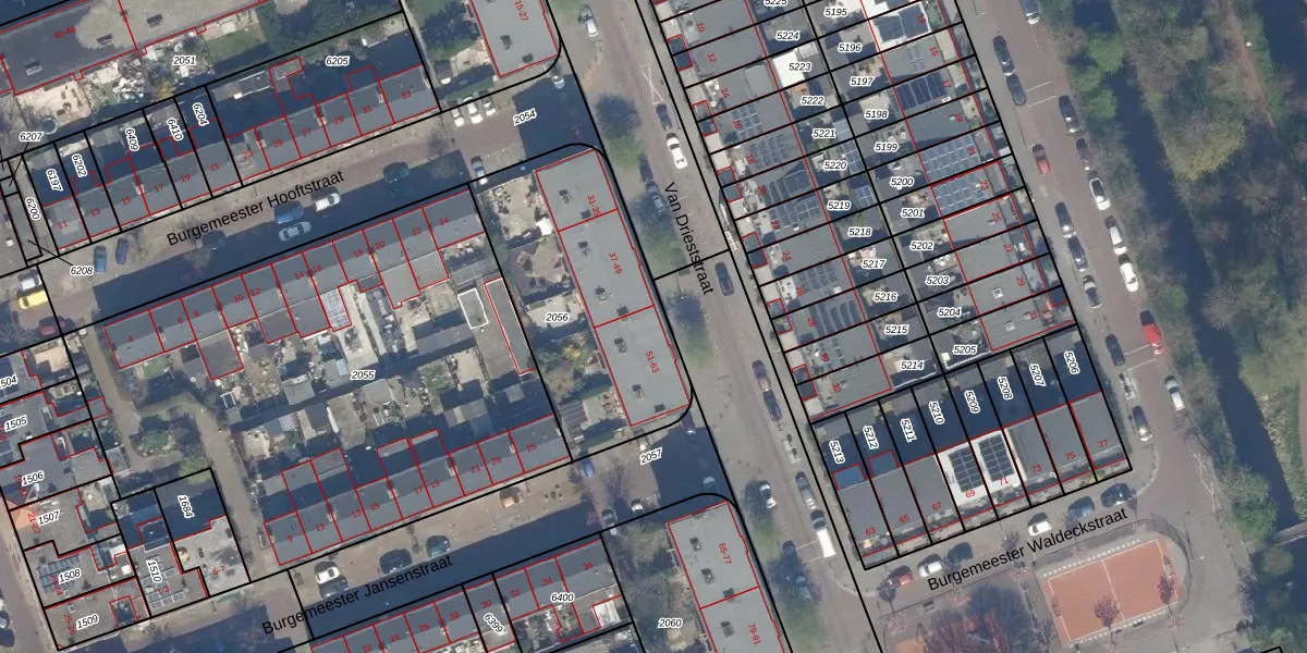 Het perceel waarop Van Drieststraat 53 staat heeft een oppervlakte van 947 m². Dit is een groot perceel. De perceeloppervlakte wordt geregistreerd door het Kadaster. Gedetailleerde informatie over de maten van dit perceel kunt u vinden in het rapport Kadastrale kaart met maatvoering van Van Drieststraat 53.