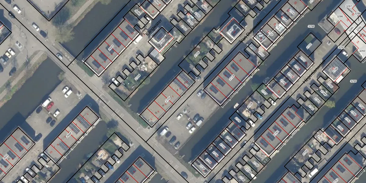 Van Duijnwater 9 is gelegen op kadastraal perceel GVH49BK2705. Deze kadastrale aanduiding is uniek en wordt gebruikt door het Kadaster om eigendomsrechten en andere zakelijke rechten vast te leggen. Het perceel maakt onderdeel uit van de kadastrale gemeente 's-Gravenhage.