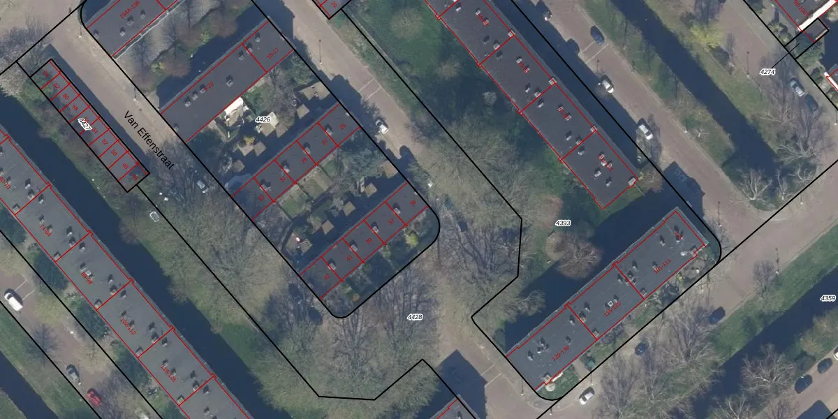Van Effenstraat 35 is gelegen op kadastraal perceel GVH28AL4426. Deze kadastrale aanduiding is uniek en wordt gebruikt door het Kadaster om eigendomsrechten en andere zakelijke rechten vast te leggen. Het perceel maakt onderdeel uit van de kadastrale gemeente 's-Gravenhage.