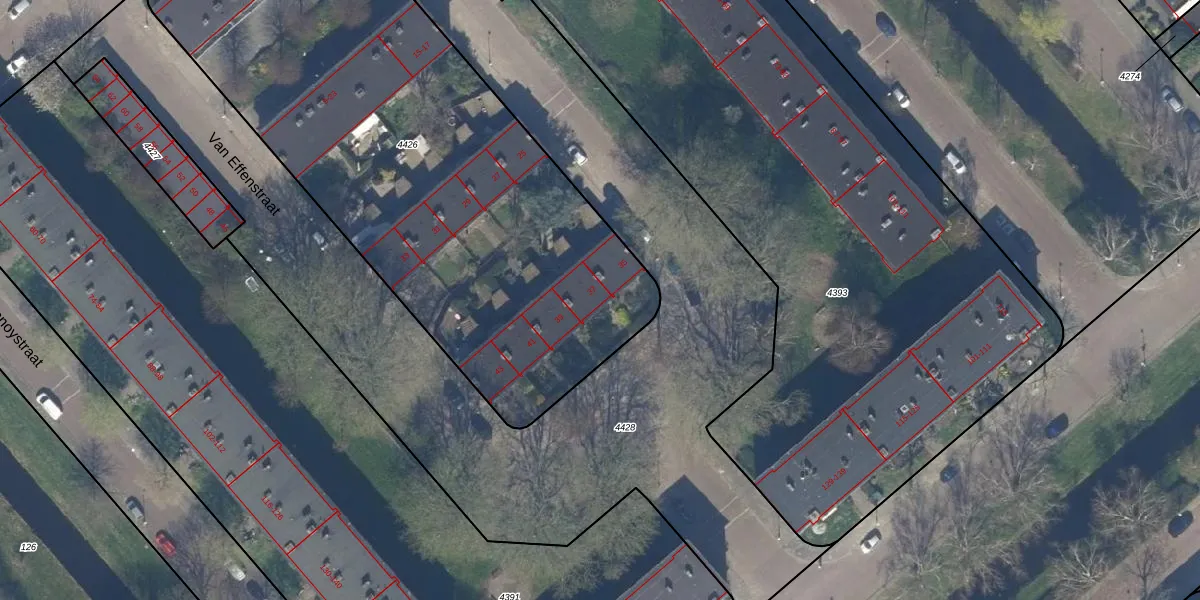 Van Effenstraat 37 is gelegen op kadastraal perceel GVH28AL4426. Deze kadastrale aanduiding is uniek en wordt gebruikt door het Kadaster om eigendomsrechten en andere zakelijke rechten vast te leggen. Het perceel maakt onderdeel uit van de kadastrale gemeente 's-Gravenhage.