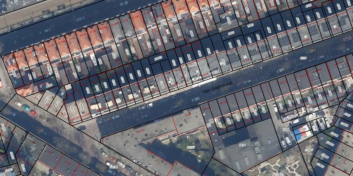 Van Goghstraat 103 is gelegen op kadastraal perceel GVH08L11407. Deze kadastrale aanduiding is uniek en wordt gebruikt door het Kadaster om eigendomsrechten en andere zakelijke rechten vast te leggen. Het perceel maakt onderdeel uit van de kadastrale gemeente 's-Gravenhage.