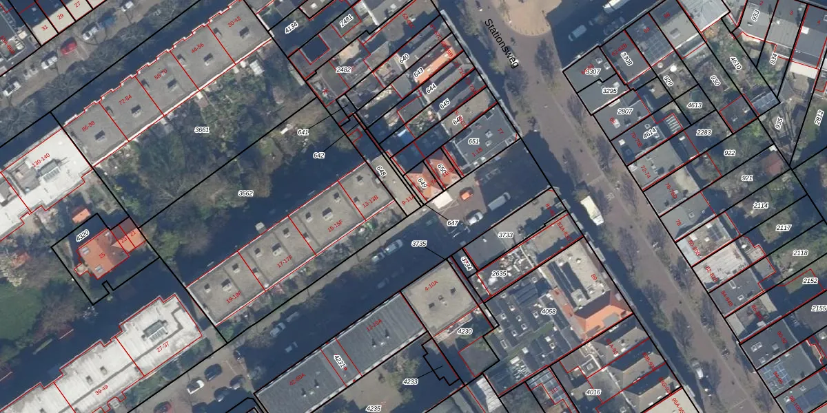 Het perceel waarop het adres ligt is GVH21-AD-648. De afkorting 'GVH21' staat voor kadastrale gemeente 's-Gravenhage. De gemiddelde perceelgrootte in 's-Gravenhage is 908,69 m². Dit perceel is kleiner: de perceeloppervlakte bedraagt 116 m². Het kleinste perceel in de kadastrale gemeente is 0 m² groot. De grootste perceeloppervlakte is 9,1 ha. Op het perceel zijn 3 adressen aanwezig. De laatste wijziging in het de Basisregistratie Kadaster (BRK) was op 01-12-2003.