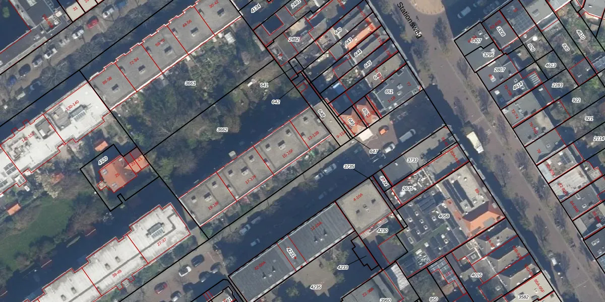 Het adres is gelegen op perceel 3662 in de sectie AD en de kadastrale gemeente 's-Gravenhage. De kadastrale aanduiding is aldus GVH21-AD-3662. De oppervlakte van het perceel is 1900 m². Dat is groter dan gemiddeld in 's-Gravenhage, waar de gemiddelde perceeloppervlakte op 908,69 m² ligt. De grootste perceeloppervlakte in de kadastrale gemeente is 9,1 ha. De kleinste oppervlakte bedraagt 0 m². Op het perceel zijn 21 adressen aanwezig. In de Basisregistratie Kadaster (BRK) werden de grenzen van het perceel geregistreerd op 01-12-2003.