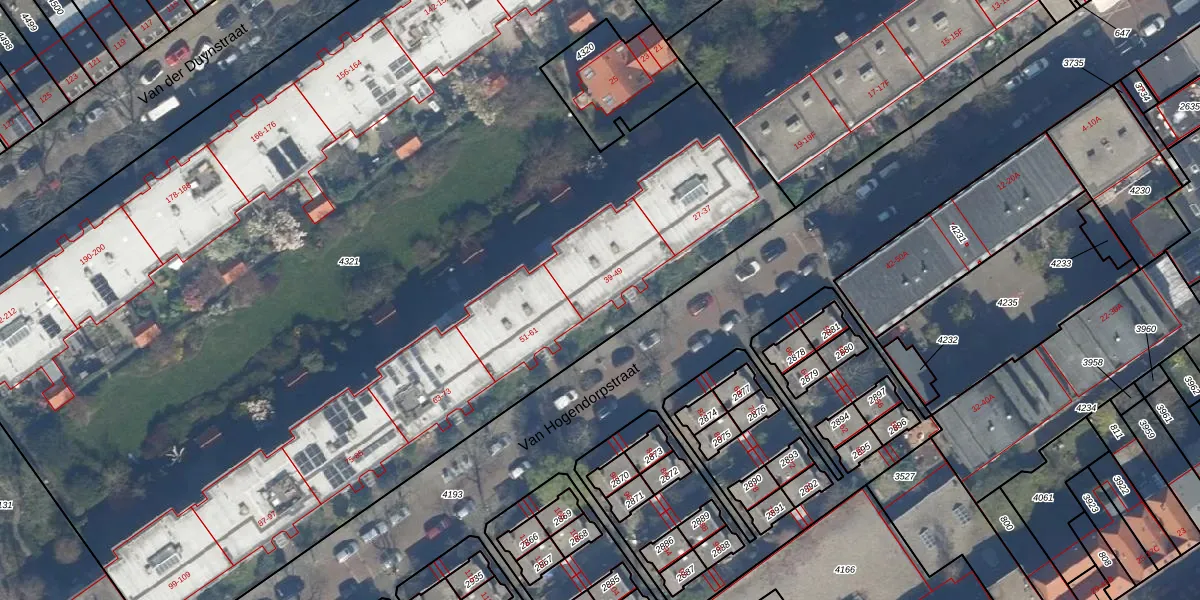 Van Hogendorpstraat 47 is gelegen op kadastraal perceel GVH21AD4321. Deze kadastrale aanduiding is uniek en wordt gebruikt door het Kadaster om eigendomsrechten en andere zakelijke rechten vast te leggen. Het perceel maakt onderdeel uit van de kadastrale gemeente 's-Gravenhage.
