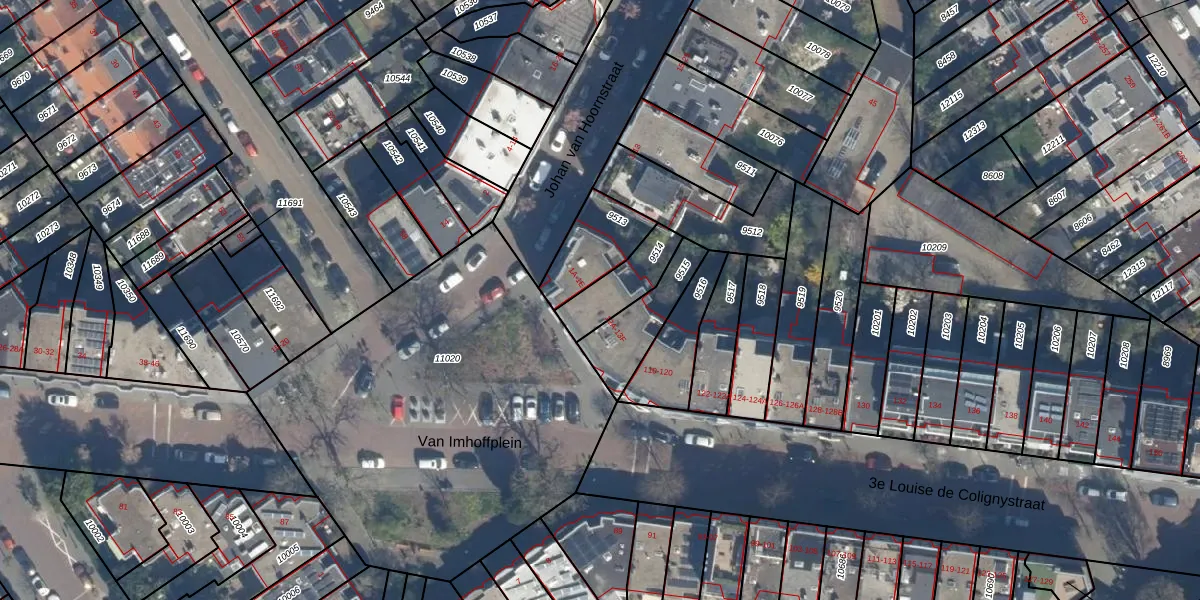 Het perceel waarop het adres ligt is GVH12-R-9514. De afkorting 'GVH12' staat voor kadastrale gemeente 's-Gravenhage. Het perceel is 148 m² groot. Dat is kleiner dan de gemiddelde perceeloppervlakte in 's-Gravenhage, dat op 544 m² ligt. De grootste perceeloppervlakte in de kadastrale gemeente is 5,9 ha. De kleinste oppervlakte bedraagt 0 m². Op het perceel zijn 6 adressen aanwezig. De huidige grenzen van het perceel zijn digitaal in de Basisregistratie Kadaster (BRK) geregistreerd op 05-12-2003.
