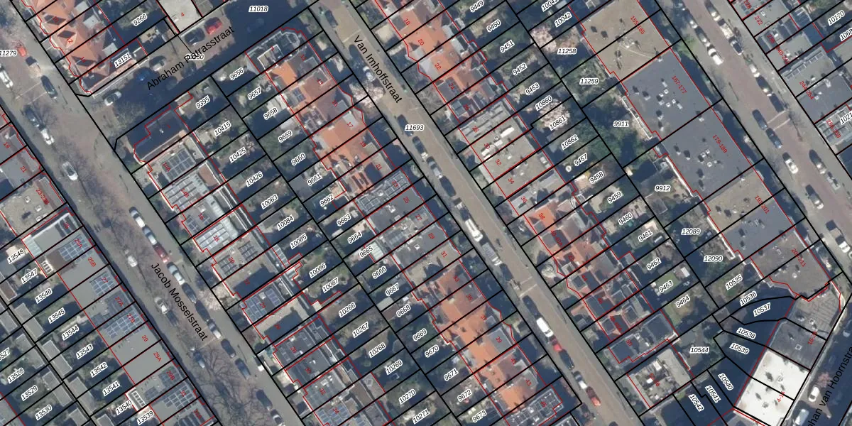 Gebruik de zoekbalk of klik op een perceel voor informatie over de adressen binnen dit perceel.