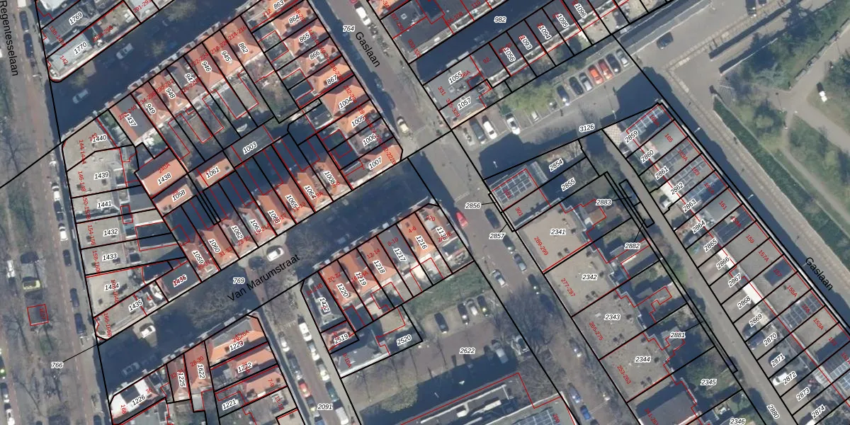 Het perceel waarop Van Marumstraat 2-E staat heeft een oppervlakte van 96 m². Dit is een klein perceel. De perceeloppervlakte wordt geregistreerd door het Kadaster. Gedetailleerde informatie over de maten van dit perceel kunt u vinden in het rapport Kadastrale kaart met maatvoering van Van Marumstraat 2-E.