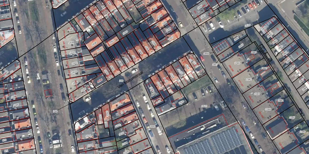 Het perceel waarop Van Marumstraat 22 staat heeft een oppervlakte van 91 m². Dit is een klein perceel. De perceeloppervlakte wordt geregistreerd door het Kadaster. Gedetailleerde informatie over de maten van dit perceel kunt u vinden in het rapport Kadastrale kaart met maatvoering van Van Marumstraat 22.
