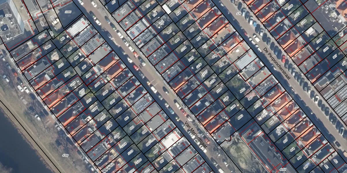 Het perceel waarop Van Merlenstraat 81 staat heeft een oppervlakte van 158 m². Dit is een middelgroot perceel. De perceeloppervlakte wordt geregistreerd door het Kadaster. Gedetailleerde informatie over de maten van dit perceel kunt u vinden in het rapport Kadastrale kaart met maatvoering van Van Merlenstraat 81.